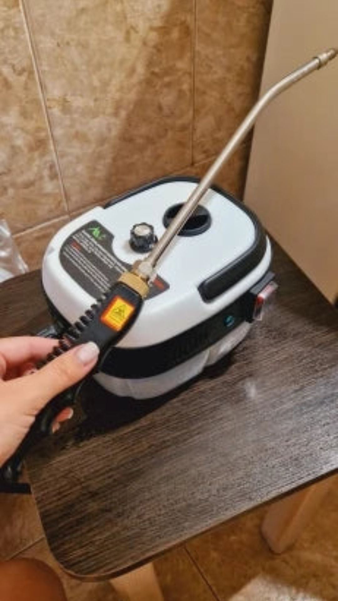 Solo tienes que llenar el tanque con agua, conectarlo, esperar unos segundos, y podrás comenzar a limpiar superficies como cocina, baño, tapicería, vidrios, pisos y más.